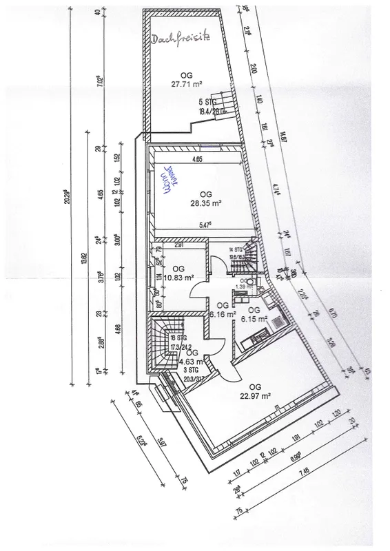 Diese elegante Wohnung im ersten Obergeschoss eines Zweifamilienhauses verfügt über eine Wohnfläche von 80 m² und ist zusätzlich durch zwei ausgebaute Räume auf dem Dachboden mit einer Nutzfläche von ca. [...]