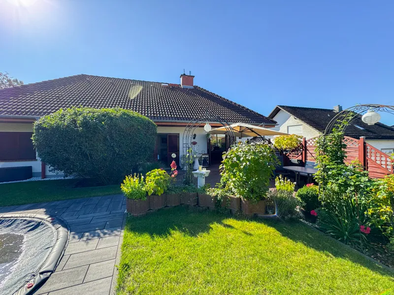 Exklusives Einfamilienhaus auf einer Ebene mit Wellnessbereich, Gartenparadies und Fernsicht!