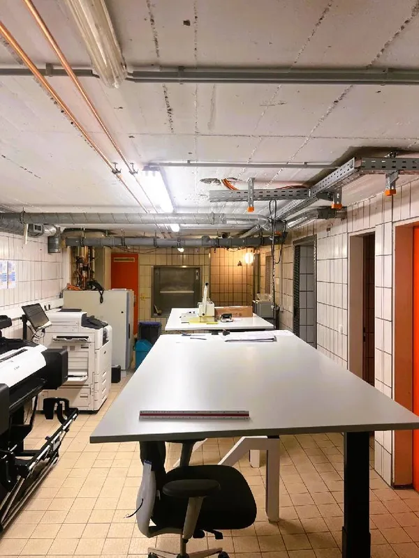 AußenansichtGrosses Büro im ErdgeschossGroßes Büro im ErdgeschossGäste-Toilette im ErdgeschossLastenaufzugGroßer KellerraumTeeküche UntergeschossGrosser KellerraumGrosser KellerraumHerren-Toilette