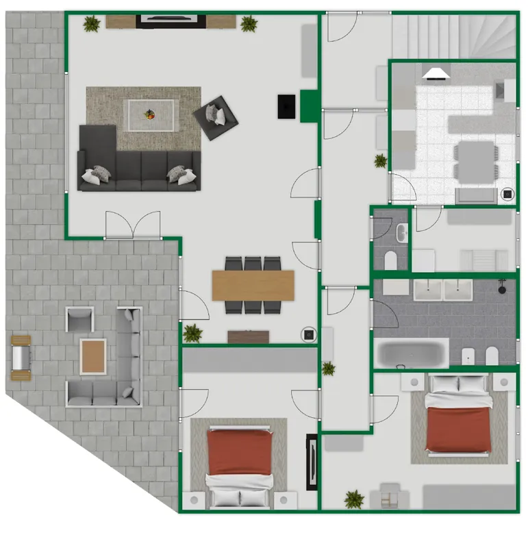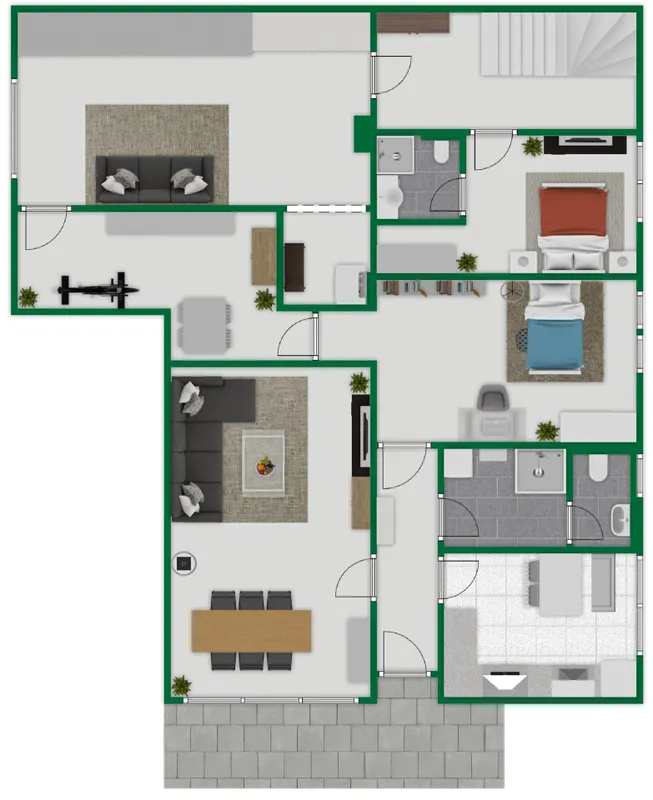 Die 240 m² Gesamtwohnfläche (ohne Berücksichtigung der Terrassen) verteilt sich wie folgt: [...]