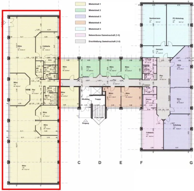 Zur Vermietung stehen folgende Büroflächen an: Haus 56: ca. 473 m² Büro 2. OG li Haus 56: ca. 460 m² Büro 2. OG re. Haus 60: ca. 460 m² Büro/Service EG Gesamt: ca.1.393 m² Stellplätze [...]