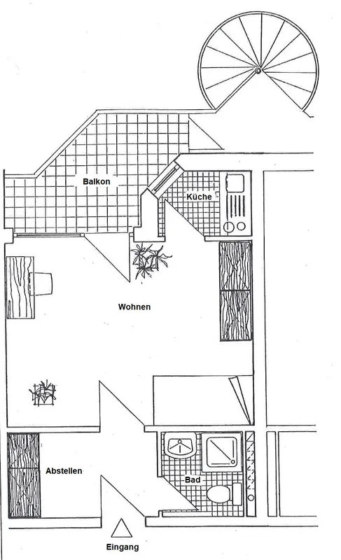 Wohn-/SchlafraumGrundrisshochwertige EinbaukücheHausgartenMedienhafen 10 Minuten zu Fuß
