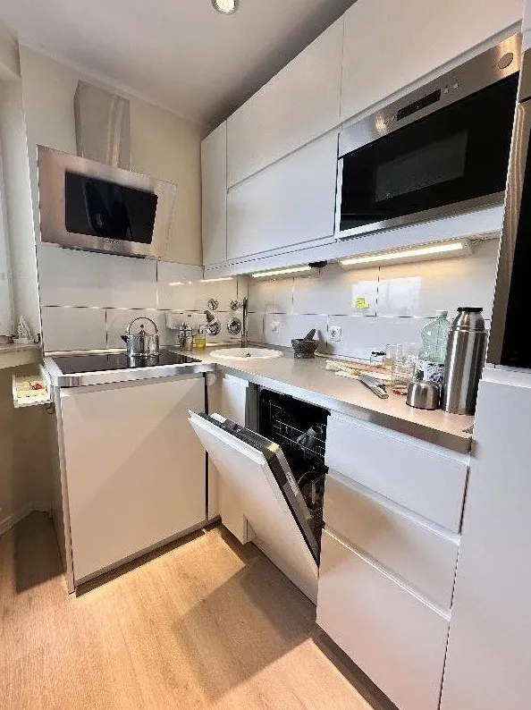 Das Apartment ist mit neuen, hochwertigen und geschmackvoll modernen Möbeln komplett ausgestattet und inkl. TV inventarisiert. Die separate Küche strahlt in schlichtem Weiß und verfügt über hochwertige Einbaugeräte und Dunstabzug [...]