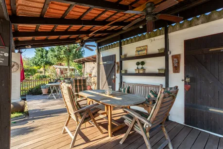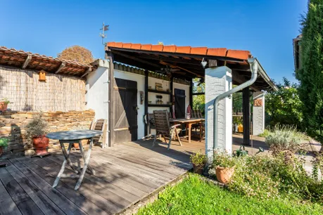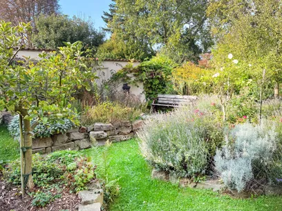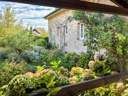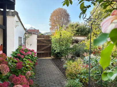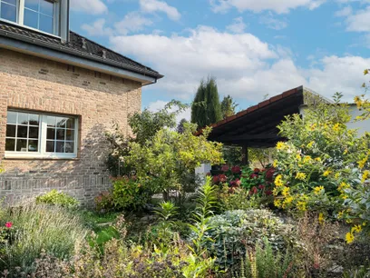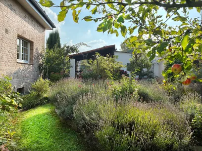 Der Garten ist ein echtes Highlight dieser Immobilie. Er wurde aufwendig und liebevoll angelegt. Im Sommer gibt es Kräuter, viele Rosen und Lavendel. Außerdem noch Apfelbäume. Der Garten ist mit Strom- und Wasserleitungen sowie drei Bodentanks und teilweise Beleuchtung versehen. Daneben befindet sich ein 3.000 ltr. Regenwassertank im Boden für die Bewässerung. Der Außenbereich bietet gleich zwei Terrassen, von denen eine überdacht ist und direkt an einen Gartenschuppen mit zwei Abstellräumen angrenzt.