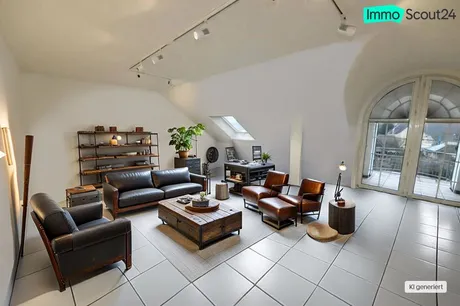 - das außergewöhnlich große Wohnzimmer mit Austritt auf die Dachloggia und Küche en suite,